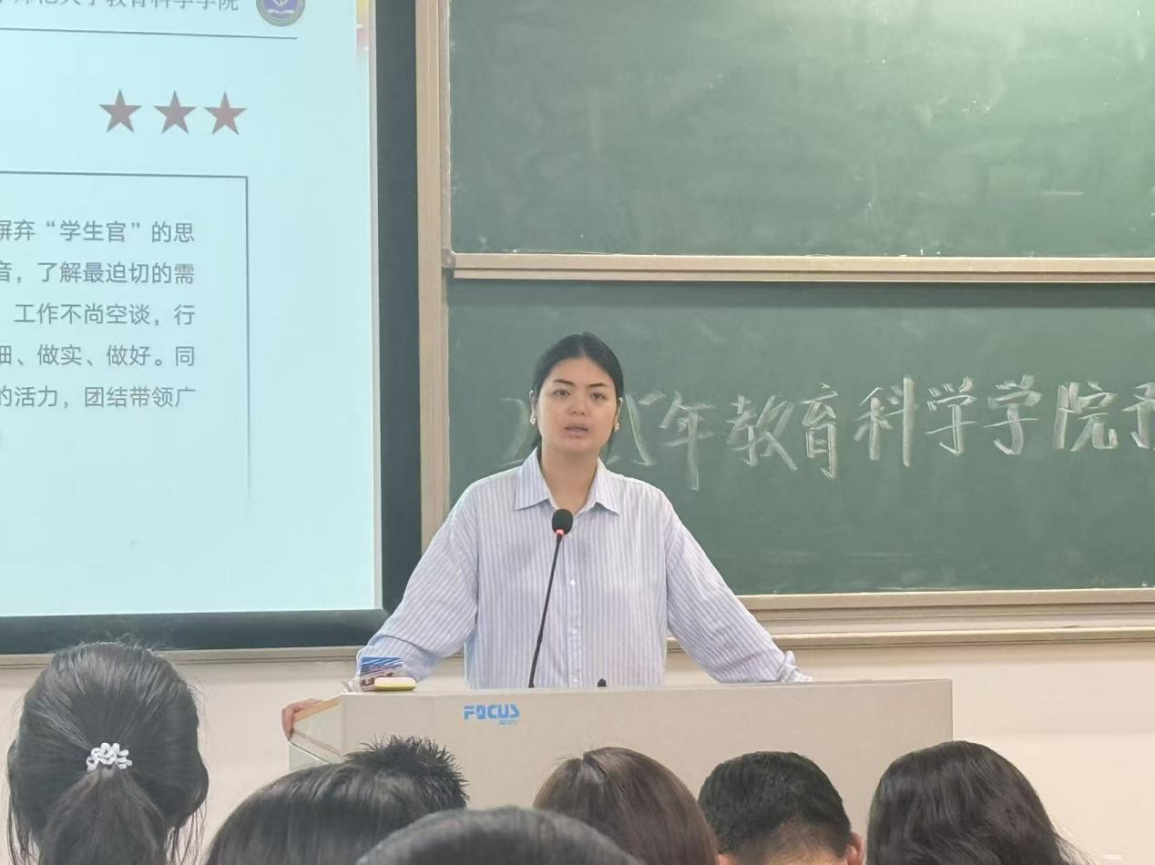 接着,公司辅导员李一鸣老师在会议上强调,作为一名员工干部,一要心怀服务之心,摒弃官僚主义,明确员工干部的核心角色是 “服务者”;二要明确做事风格,既要按照要求将工作做好、做细、做实,也要敢于创新,充分发挥员工干部的先锋模范作用。
