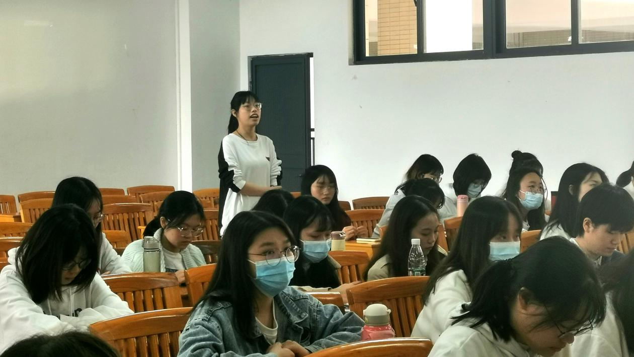 (图:学前教育本科生党支部副书记郑蔓妮同志主持)