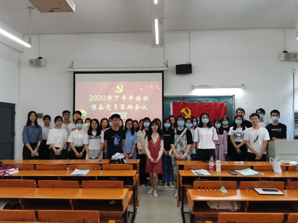 大会在雄壮的国歌声中拉开序幕,按照程序,发展对象汇报自己对党的认识、入党动机、思想认识、行为表现等,表达了对党的忠诚,表示将不忘初心,牢记使命,一心跟党走。接着,在场正式党员、预备党员对本次发展对象进行自由提问。随后,正式党员进行不记名差额纸质投票,各支部委员会成员计票、监票,现场唱票并公布结果。大会一致同意杨笑颖、李思婷等27名同志成为中共预备党员。最后,新预备党员进行入党宣誓。