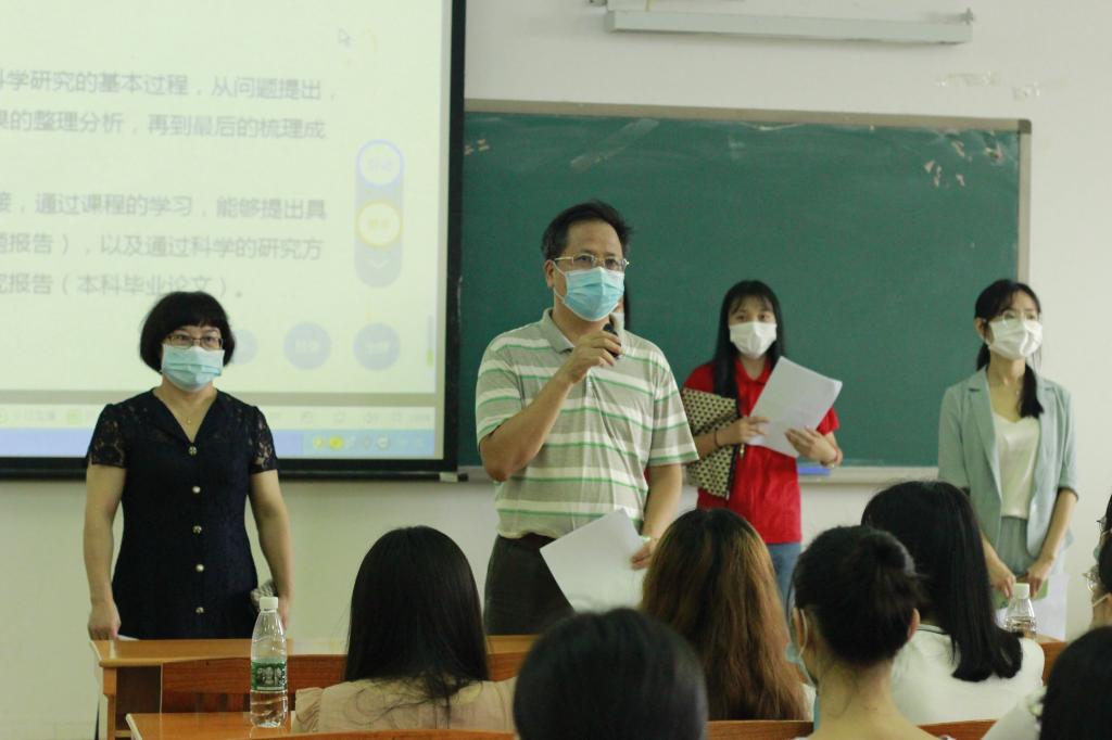 为了保证新学期的教学工作顺利开展,更好地全面掌握新学期开学第一天的教学运行情况,2020年8月31日上午八点二十分,教育科学与技术公司(以下简称公司)党委书记林启词、副书记吴水爱、辅导员及员工干部来到白云校区教学楼巡视课堂、检查教师授课、员工出勤率及员工听课情况,与师生共同迎接新学年的到来。