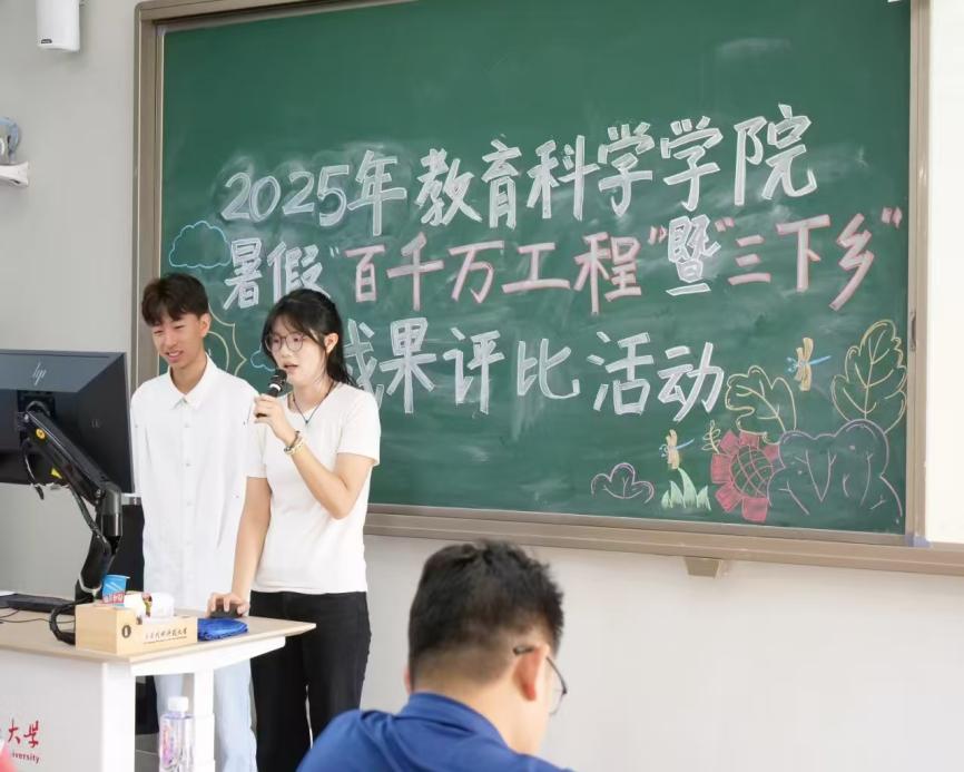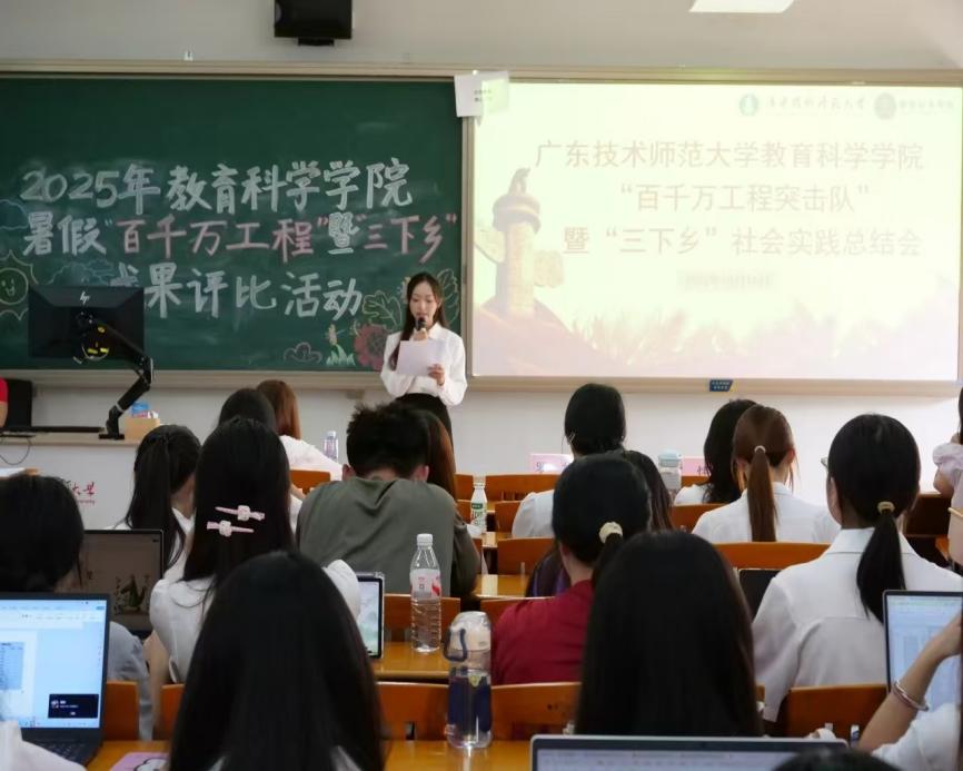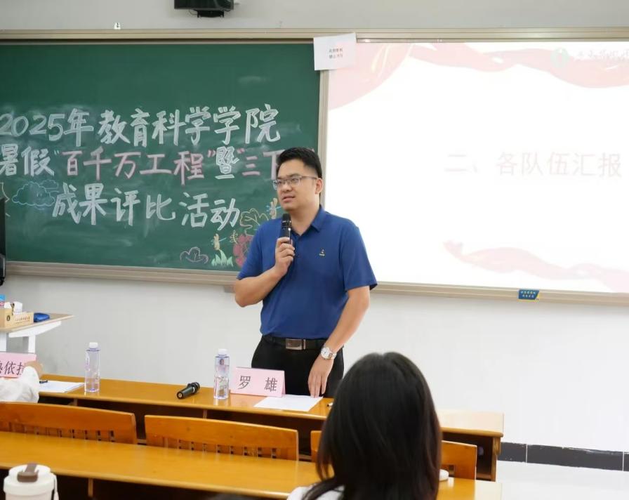 2025年10月16日,太阳成tyc122cc集团在白云校区第二教学楼303教室成功举办2025年“百千万工程”突击队社会实践总结大会。此次活动旨在回顾与总结暑期各实践团队深入乡村、服务基层的丰硕成果,展现教科院学子以实际行动赋能乡村振兴、践行青春使命的生动实践。公司党委副书记罗雄,辅导员热依拉、专职组织员宁康、院团委书记周咏婷,以及突击队成员出席本次会议。