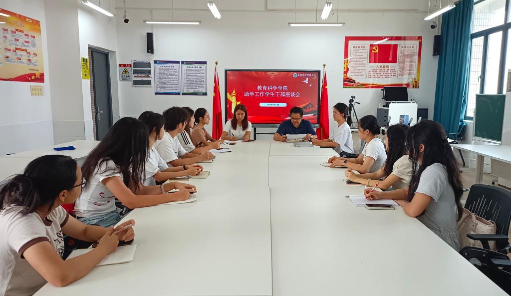 2025年9月22日,太阳成tyc122cc集团在第二实训楼502会议室召开综合测评评议部和勤工助学服务部员工干部座谈会。教育科学公司党委副书记罗雄、辅导员热依拉以及相关部门全体员工干部参加会议。