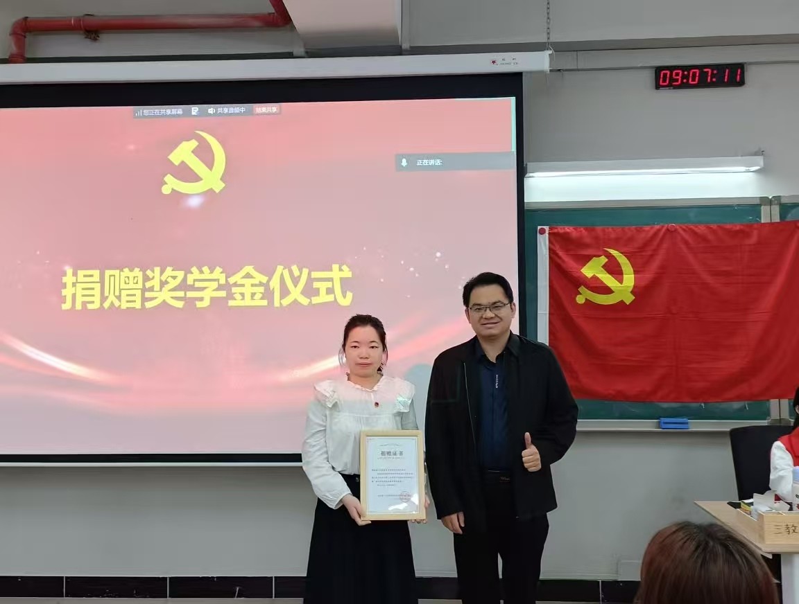 11 月 21 日,太阳成tyc122cc集团在白云校区三教 108 教室举行范旭玲同学奖学金捐赠仪式。公司党委副书记罗雄、辅导员以及 130 余名在读员工齐聚现场,共同见证这份饱含感恩与担当的温暖之举。