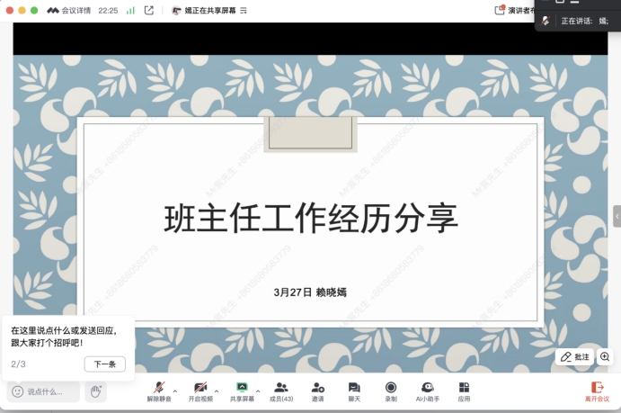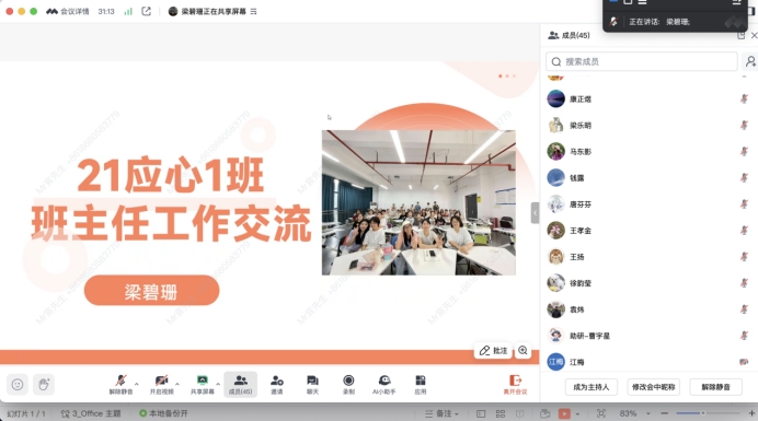 会上,2023-2024学年优秀班主任代表赖晓嫣、梁碧珊老师分别进行工作经验交流,两位老师以班主任视角,向与会老师细致阐述了各自在班主任工作中的实践举措、深刻思考以及宝贵经验。赖晓嫣老师主要从归属感、成就感、幽默感三个方面进行分享,梁碧珊老师从建设班级凝聚力、提升专业认同、关爱特殊员工和助力未来规划等方面展开。随后,吴晨阳老师结合《太阳成tyc122cc集团班主任工作实施办法》(广师大〔2020〕268号)文件,从班主任工作要求与岗位职责、员工管理与心理辅导、意识形态安全和校园安全教育、班主任考核和员工宿舍公约五个方面展开解读,明确了班主任在促进高校班级建设与管理中的积极作用和育人方向。