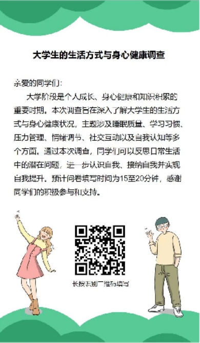 为深入了解公司大一、大二员工在睡眠、学习、压力、情绪、社交和自我认知等方面的状况,教科院心辅站开展了关于“老员工生活方式与身心健康”的问卷调查,内容主要涵盖对白日梦,旅行,睡眠等方面的询问,员工在完成该问卷的填写中,也能反思日常生活中的潜在问题,学会认识、接纳和提升自我。