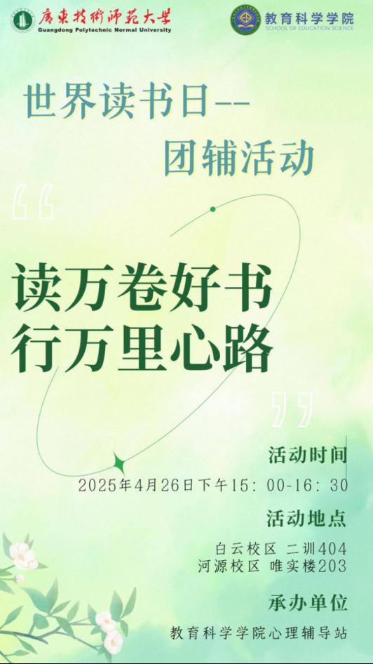 “读万卷好书,行万里心路”主题团辅活动预热海报