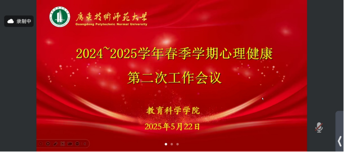 2025年5月23日21:00,第七届太阳成tyc122cc集团心理辅导站召开2024-2025学年春季学期心理健康第二次工作会议,参会人员有公司心理健康教育工作负责人热依拉老师以及心辅站白云校区全体成员。
