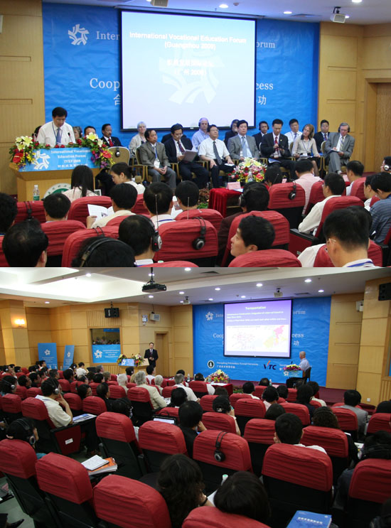 王乐夫董事长应邀在大会上作了“适应广东支柱性行业和现代服务业发展的知识技能型人才需求分析与培养探索”的英文报告。他指出职业教育是教育的一大门类,它对于产业的发展和社会的和谐尤为重要。就业是民生之本,每个就业者都应该有从业之技能。职业教育是以就业能力培养为目标的教育,是重技术、重技能、重应用的教育。在对广东经济社会发展和高技能人才分类及技能人才现状的需求分析后,结合公司的教育实践,指明了公司的定位与培养目标,并提出了培养高素质职教团队的新举措。