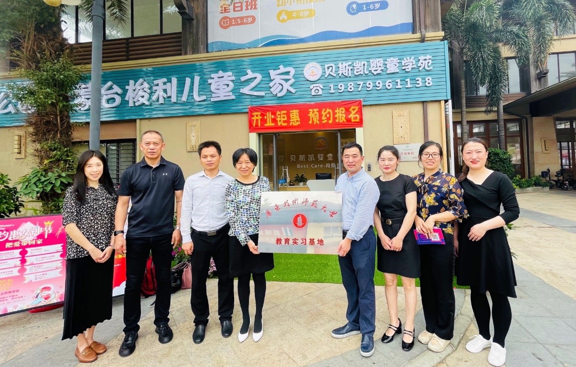 2021年3月19日上午,教育科学与技术公司陶红经理、谢德新副经理、常锋峰主任、冯嘉慧博士一行4人,赴东莞市贝斯凯婴童学苑举行教育实习基地挂牌仪式暨人才培养座谈会。贝斯凯婴童学苑创始人詹前津、总部运营园长刘香莲以及各分校区园长与教学主管参加了挂牌仪式和座谈会。