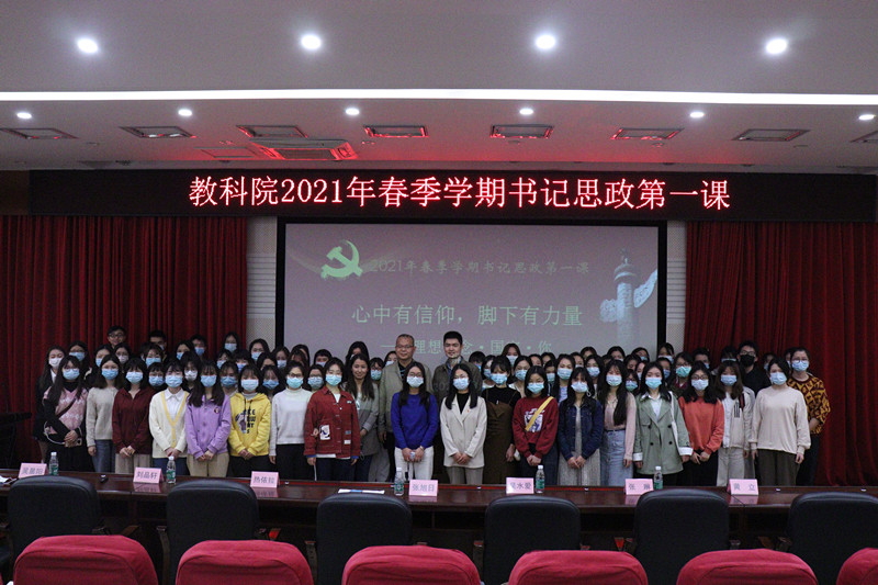 3月10日,教育科学与技术公司党委书记张旭日于白云校区三教104报告厅举行了2021年春季学期书记思政第一课。员工党支部书记、专职辅导员以及全体员工党员、团学干事、各班班委、员工助理团队等200余名师生参加听讲。
