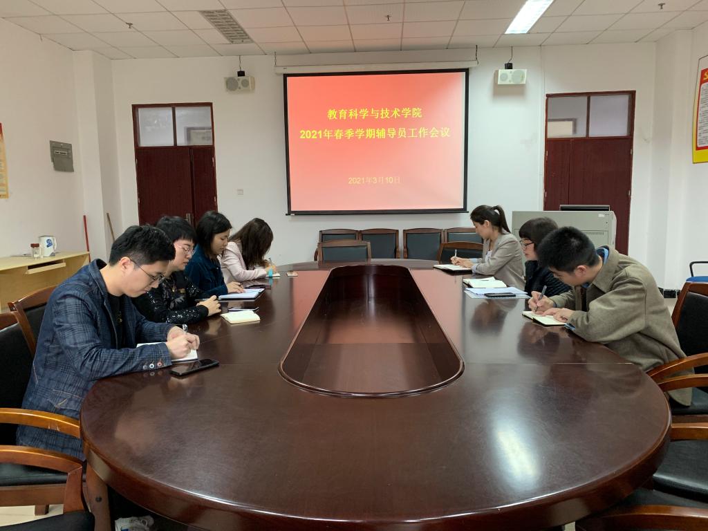 2021年3月10日上午,教育科学与技术公司在白云校区一教315会议室召开新学期辅导员工作部署会。会议由公司党委副书记吴水爱主持,全体专兼职辅导员参加会议。