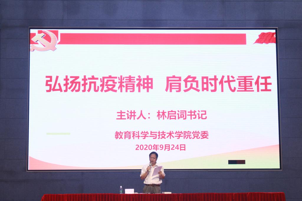 国势之强由于人,人材之成出于学。办好公司思政课,是培养一代又一代社会主义建设者和接班人的重要保障,也是我国高校的共同使命。教育科学与技术公司党委林启词书记于2020年9月24日在白云校区员工活动中心为公司学子讲授了本学期思政第一课。