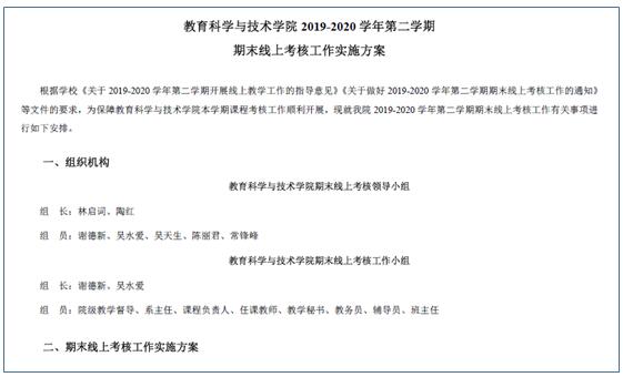 7月6日,教育科学与技术学如期举行期末线上考试,其中,《普通教育学》和《心理学》是开卷考试,《教育技术学研究方法》和《普通心理学》闭卷考试,分布在6个考场,12名监考老师,共273名参加了考试,3名院领导参加了巡考,其中2名参加公司安排的巡考。考试平台采用超星学习通,监考平台采用腾讯会议。