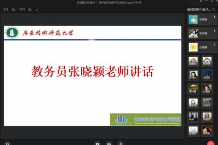 张晓颖老师高度赞扬了学习委员和教学信息员工作认真负责的态度,也感谢大家对本科教学工作的大力支持。张老师强调,线上教学对于老师和员工都是新挑战,公司做了很多工作以保障线上教学的质量,开展本次座谈会就是为了进一步提高线上教学质量,为同学们营造良好的在线学习氛围。