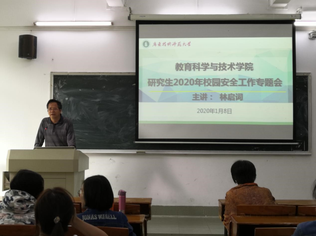 党委书记林启词为全体研究生作加强思想政治工作建设、校园安全教育的讲话。他要求同学们认真学习党的十九届四中全会精神,深刻领会坚持和完善中国特色社会主义制度、推进国家治理体系和治理能力现代化的精神。他说,安全工作是公司的头等大事,首先要求全体同学提高安全防范意识、严格遵守公司各项安全工作制度。针对当前的安全形势,研究生要进一步提高政治站位,增强安全意识,树立高度的责任感,进一步增强“四个意识”,坚定“四个自信”,以“两个维护”作为指导学习和工作开展的行动指南,把爱国奉献的热情转化为创新创造的不竭动力,要时刻用爱国奋斗精神鼓舞自己,为实现中华民族伟大复兴中国梦贡献智慧和力量。他强调研究生要规范微信、微博、公众号等融媒体平台的使用,远离邪教,做到不传谣、不信谣,大力传播正能量。要求全体研究生要严格遵守公司的各项管理规定,员工外出参加学习学术活动、实习等必须经过导师签名批准和向公司报备,进一步规范日常管理等各环节。林书记告诫全体研究生:为了自己和自己身边的人,要爱惜自己的身体,注意自己的安全,预防身边的隐患,避免“万一”事件发生,特别是回家路途比较遥远的同学,旅途过程中更要提高警惕。