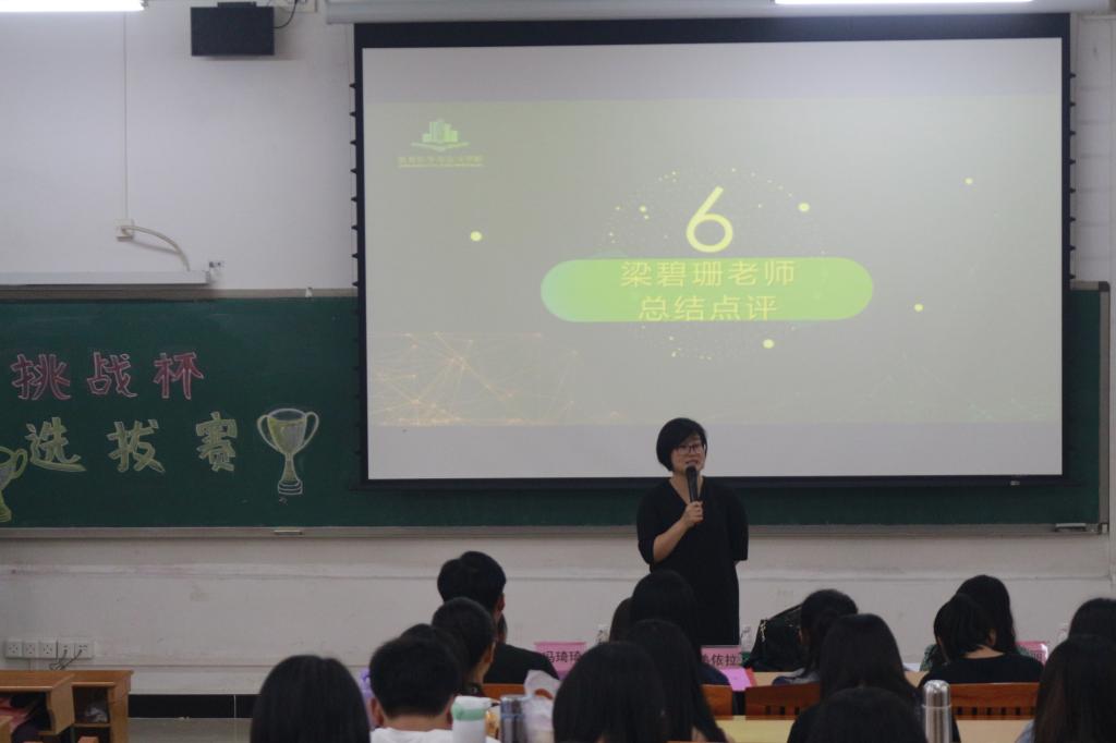 接着,梁碧珊老师为此次比赛做总结点评,首先对参赛选手们能力给予了肯定,但也提出了方案中存在的不足,最后表达了对参赛选手们的美好祝愿。