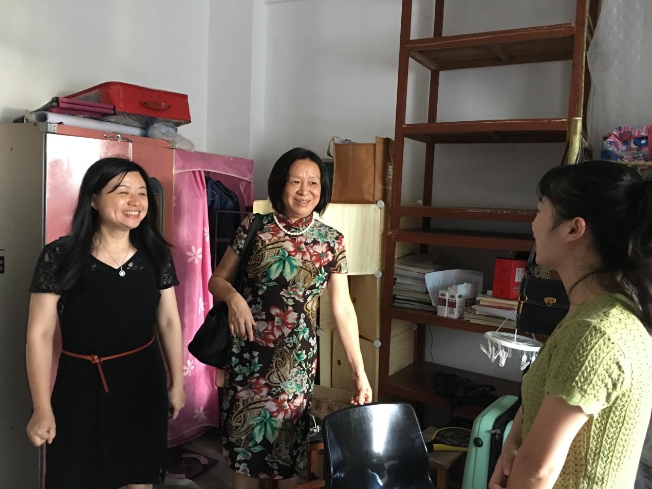下午四时许,公司经理陶红、副经理陈丽君和辅导员梁爽一同深入研究生新生宿舍,看望慰问新同学,给新生带去了公司的问候和关怀。听说老师们前来宿舍看望,同学们很快围拢过来,你一言我一语地回答着,每到一间宿舍,领导老师们都向同学们表达着亲切的问候。陶经理亲切的询问新同学们来自哪里,是否思念家乡,对新环境是否适应,关心同学们的饮食起居,并嘱咐同学们要养成良好的生活作息和卫生习惯,和同学们处理好关系,互帮互助,尽快融入研究生的生活。