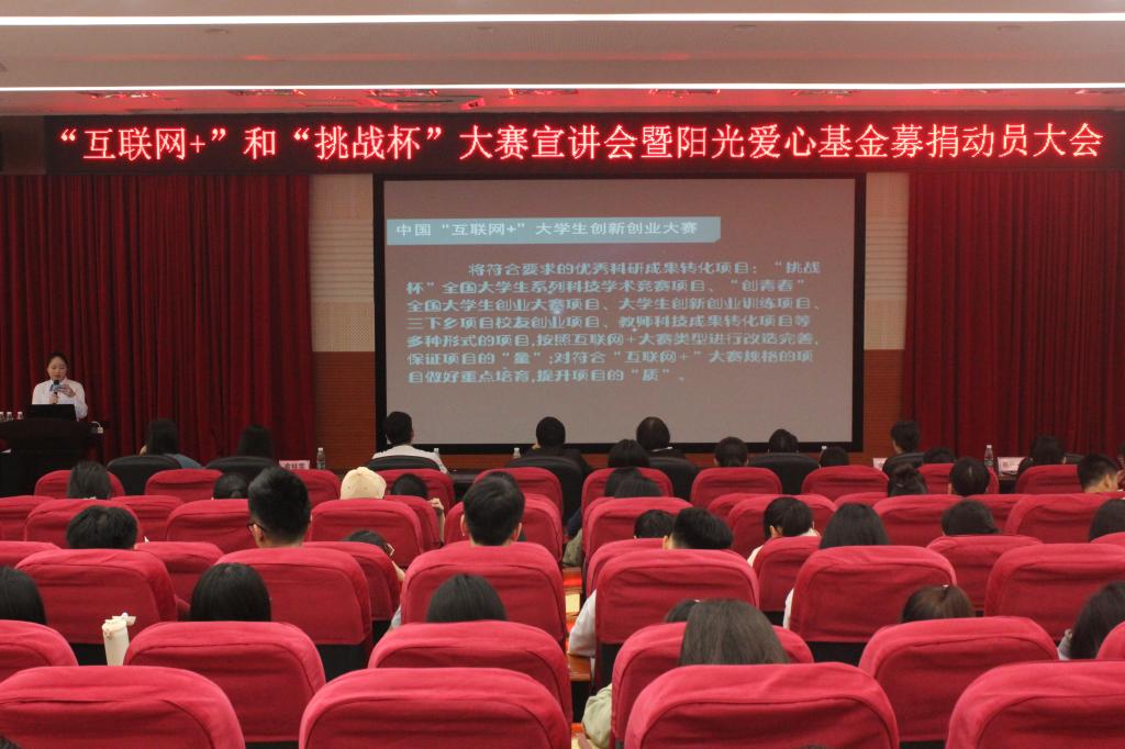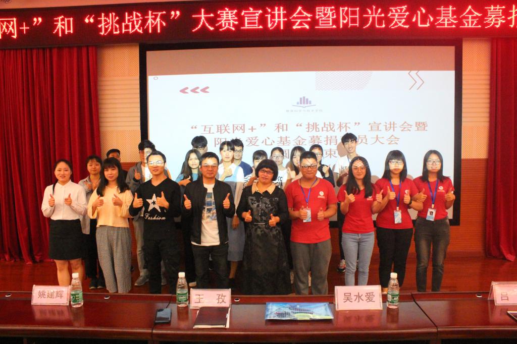 2019年4月18日晚,教育科学与技术公司“互联网+”和“挑战杯”大赛宣讲会暨阳光爱心基金募捐动员大会在三教104报告厅顺利举行。出席本次会议的嘉宾有党委副书记吴水爱、团总支书记王孜、汽车公司往届参加“挑战杯”优秀员工姚建辉、团总支副书记佘斯琦、团总支执行副书记张梓晓、员工会主席吕威、员工会副主席庄凯旋、黄丽萍、陈玉梅以及阳光爱心基金会前任会长俞桂雯。本次大会有两项议程:一是“挑战杯”和“互联网+”宣讲会,二是阳光爱心基金募捐大会。