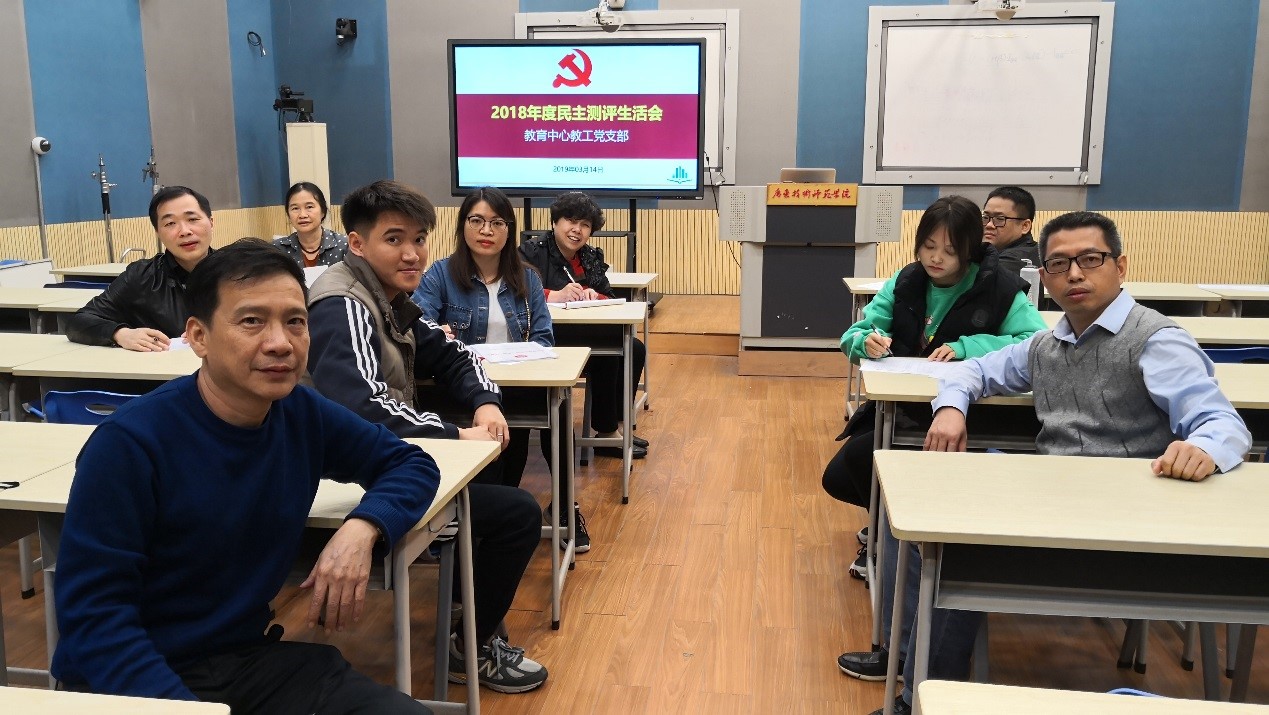 各个党支部在召开组织生活会和开展民主评议党员前,采取领导干部领学带学、专家学者党课辅导等方式组织党员集中学习、相互交流。结合本支部实际和职能职责,重点学习领会习近平总书记关于加强党的政治建设,坚决贯彻党中央决策部署,敢于担当负责,狠抓工作落实,突出基层党组织政治功能,提高基层党建工作质量,防止和克服形式主义、官僚主义等重要指示精神,学习掌握习近平总书记视察广东重要讲话精神与总书记对广东一系列重要指示要求,学习掌握《中国共产党纪律处分条例》《中国共产党支部工作条例(试行)》《加强党的基层组织建设三年行动计划(2018-2020年)》《广东省党支部规范化建设指导意见》(粤组通〔2018〕44号)。通过深化学习,准确把握党中央和省委要求,准确把握党章等规定,查找在思想观念、能力水平、群众观念等方面存在的差距;开展典型案例为反面教材的警示教育,着重查找在党性党风方面存在的主要问题以及干部群众反映的其他热点、难点问题。把党支部功能定位和职责任务搞清楚,把党支部规范化建设的要求搞清楚,把合格党员标准搞清楚,打牢开好组织生活会和开展民主评议党员的思想基础。对确有特殊原因不能参加集中学习的党员,各个党支部都采取灵活方式,及时向他们提供学习材料,传达党组织相关要求。党政办党支部与教育中心党支部就首先组织《加强党的基层组织建设三年行动计划(2018--2020)》专题学习。召开学习对照《条例》《意见》进行自查自纠整改工作会议。研究生第二党支部进行《心怀责任,勇于担当》的专题讲座。教育科学与技术公司本科生第一党支部和第二党支部在民主生活会上,吴水爱副书记还要求各位员工党员要积极参与课外党组织活动,真正用好“学习强国”APP等网络学习平台,用习近平新时代中国特色社会主义思想武装头脑,为青春事业谱写华章。