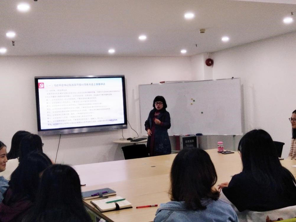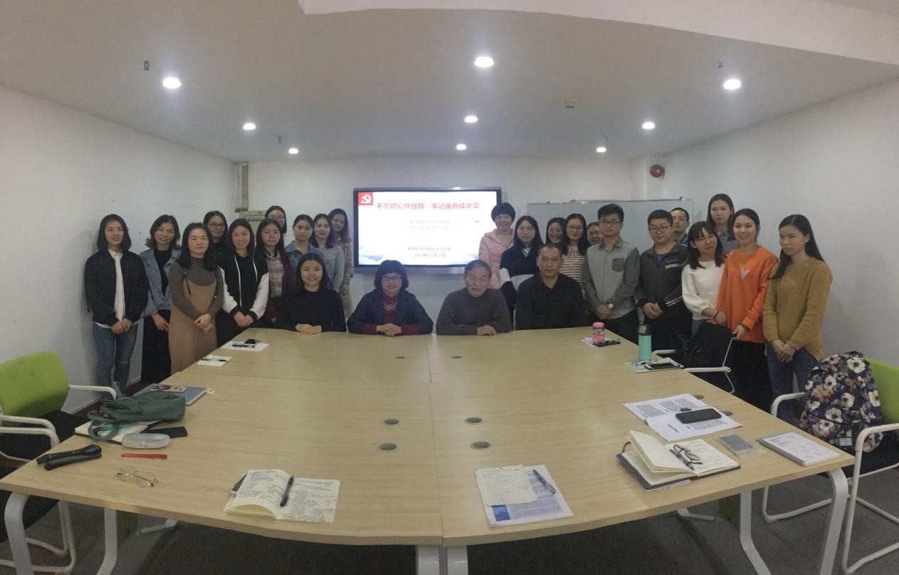 为深入学习贯彻习近平总书记视察广东重要讲话精神和党的十九大报告, 12月26日教科公司党委副书记吴水爱为18级全体研究生作了“不忘初心终绽放,牢记使命续华章”的专题讲座。出席此次报告会的有教科院办公室主任常锋峰老师,辅导员梁爽老师和18级全体研究生。