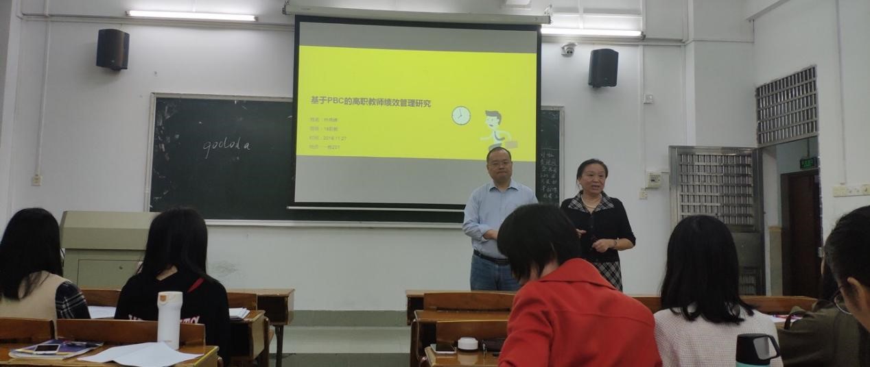 王涛涛教授在点评林伟婷题为《基于PBC的高职教师绩效管理研究》和赖珊珊题为《“一带一路”倡议下高职院校人才培养的对策研究》中指出,职业教育管理课堂的教学方式提供给大家一个很好的锻炼自身能力的舞台,鼓励同学们能珍惜课堂交流的机会,尽快适应研究生自主学习的氛围。同时,王教授肯定林伟婷同学和赖珊珊同的学习态度与方式,也提出了一些建议,比如在选题方面需要考虑选题的价值与可行性;在研究选题里多加形容词,做到小题大做,收缩范围;多实证研究的方法来分析问题等等,让全体员工深刻地感受到针对性的启发。