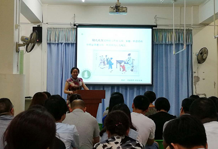 6月8日下午18点,陶红教授应广州市天河区天府路幼儿园邀请,到幼儿园进行教学指导工作并成功举办幼儿礼仪教育讲座。