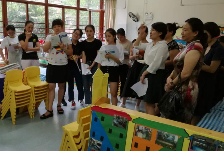 在天府路幼儿园的邀请下,陶红教授作为特邀专家参加幼儿园的空间环境教学评比活动。此次活动中,陶红教授在幼儿园工作人员的陪同下参观天府路幼儿园的空间环境建构,赏评幼儿园师生制作的优秀作品,对空间环境建构和日常教学活动安排等进行科学化规范化指导。