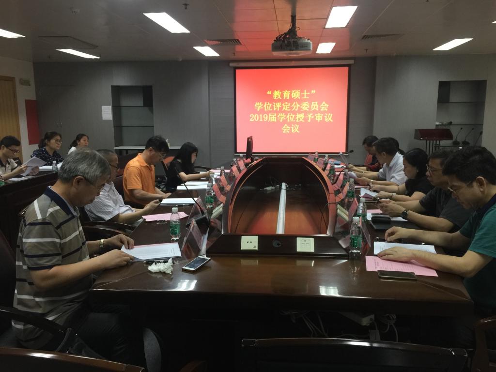 2019年6月14日下午3点,“教育硕士”学位评定分委员会2019届学位授予审议会议在工业中心605室举行。“教育硕士”学位评定分委员会主席黄崴教授,陶红、姚屏副主席,尹新春、刘颖悟、杨勇、陈丽君、周卫忠、贺显斌、谢林林委员参加本次审议会议。本次会议由黄崴教授主持。