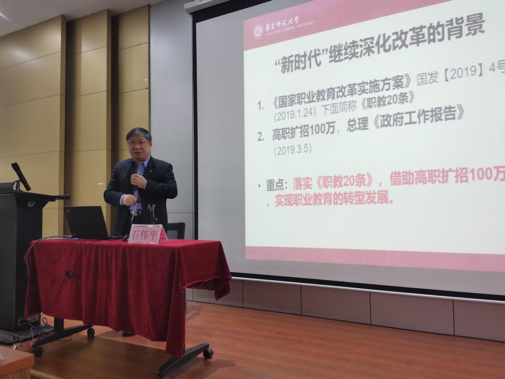 2019年12月3日上午,“太阳成tyc122cc集团教育名家讲坛”第三期在公司东校区第一教学楼209讲学厅成功举办。本次讲坛邀请的主讲嘉宾是华东师范大学终身教授、博士生导师、华东师范大学职业教育与成人教育研究所名誉所长石伟平教授。