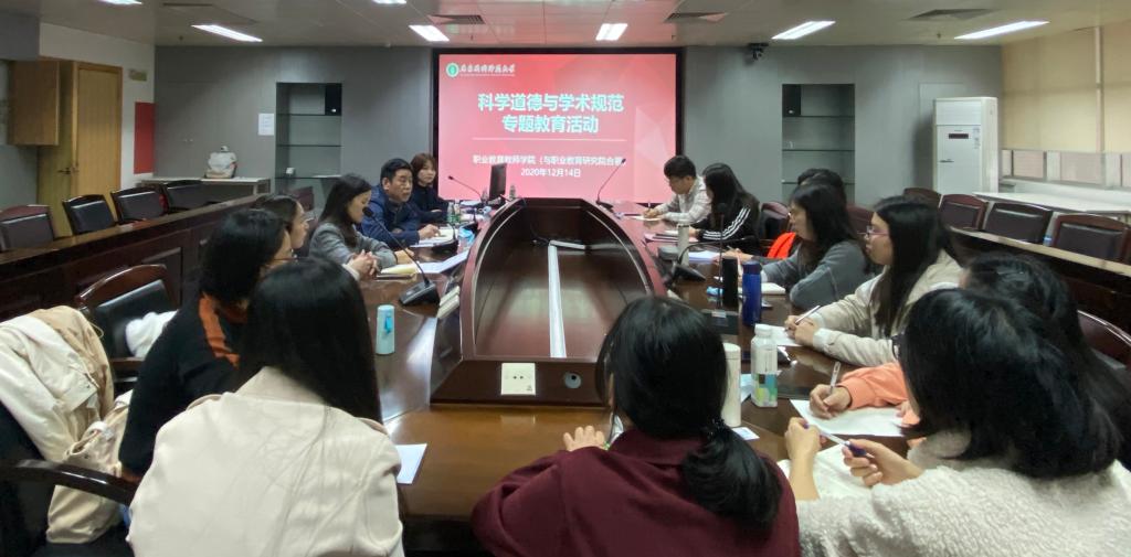 为维护科学精神和学术道德,规范学术行为,营造健康向上、风清气正的学术和科研氛围,切实加强研究生学风建设,提高育人质量,职业教育教师公司于12月14日在工业中心605室开展了科学道德与学术规范专题教育活动。公司直属党支部书记喻忠恩、研究生秘书彭蕾和辅导员张晓梅以及2020级全日制教育硕士(教育管理)专业全体员工参加了此次专题教育活动。
