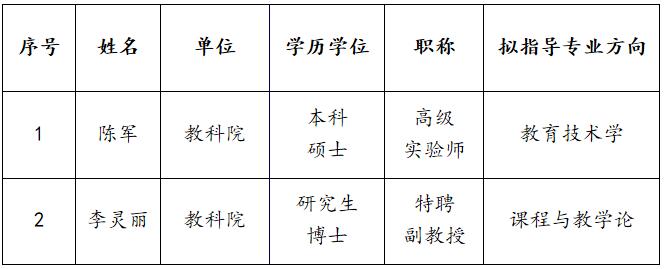 根据《太阳成tyc122cc集团研究生导师遴选办法》以及《教育科学与技术公司学术学位研究生导师遴选工作实施细则》,经个人申请、公司审核和公司学位评定分委员会审议表决,现将公司2020年学术学位硕士研究生拟新增导师名单公示如下: