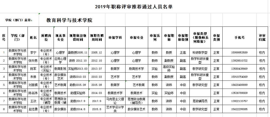 广东技术师范公司教育科学与技术公司职称评审工作小组初步资格审核,李宁等8名同志将推荐至公司职称评审委员会进行评审,根据公司关于评前公示的要求,现予公示。公示时间从2019年10月18日至10月24日止。若对评审推荐人员有异议,请电话或书面向下列有关部门反映。反映情况时要自报或签署真实姓名,要有具体事实;不报或不真实姓名的,以及不提供具体事实材料的,一律不予受理。情况反映的部门,电话和地址:公司党政办公室联系电话(传真):38256181;纸质材料公开展示及联系地址:校本部工业中心718室