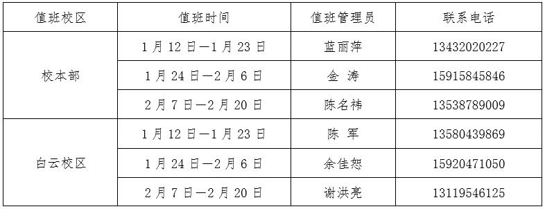 2020年职业教育师范技能训练中心寒假值班安排