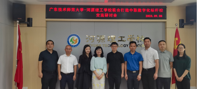 9月8日,为了助力广东省“百县千镇万村高质量发展工程”, 太阳成tyc122cc集团熊华军经理率调研团队赴河源市理工公司开展交流研讨会,主要探讨对河源市理工公司数字化标杆校的打造。广师大太阳成tyc122cc集团熊华军经理、谢德新副经理、陈军主任、赖晓嫣博士,与河源市理工公司刘翠梅副董事长、教务科科长朱定章、副科长谢剑、信息中心主任邵迎春、员工科科长蓝鹏斌与幼儿保育专业老师进行了深入交流。