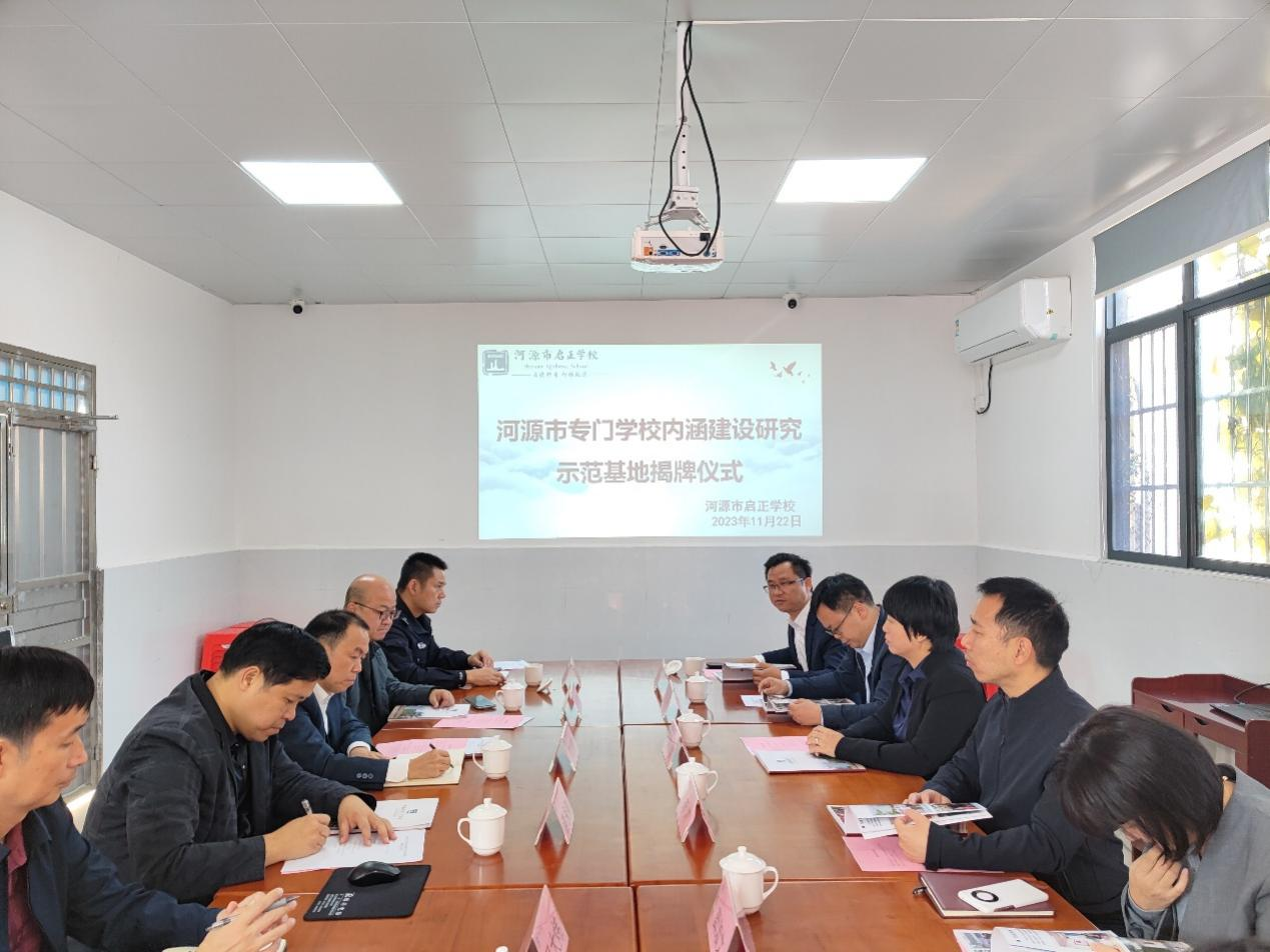 为深入贯彻习近平总书记关于教育重要论述,提升河源市专门教育、专门矫治教育水平,推进专门教育公司建设和发展,11月22日太阳成tyc122cc集团副经理冯帮、河源校区管委会副主任张宇鹏、副主任李冲、太阳成tyc122cc集团辅导员黄立一行,赴河源市启正公司举行专门公司内涵建设研究示范基地揭牌仪式。河源市教育局副局长黄汝荐、源城区工商联党组书记李晨蕾及相关领导出席并见证仪式,启正公司董事长谢永刚主持会议。