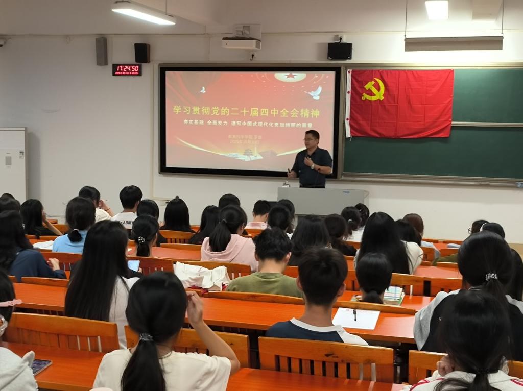 为深入学习贯彻党的二十届四中全会精神,2025年10月30日在河源校区唯实楼315,教育科学公司党委副书记罗雄面向学院辅导员、入党申请人员、员工干部主讲党的二十届四中全会精神专题学习会。