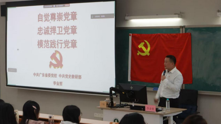 党章是青年修身的根本遵循,为践行使命明确行为准则。中共广东省委党校的李金哲老师结合党史细节阐释党章的核心地位。李金哲老师与同学们围绕党章展开深度互动,从一大党纲的历史渊源讲到现行党章的制度规范,引导大家理解党章作为党内根本大法的意义,明晰党员义务与权利的辩证关系。学员们认真聆听,积极提问,分享自己对“党章与青年担当”的思考。有的同学表示要把党章内容记在心里、落实在日常行动中,有的同学计划将党章读本放在手边常翻常学。