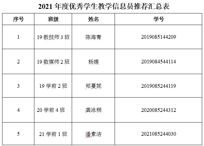 教育科学与技术公司2021年度公司优秀员工教学信息员评选,共有8位员工参评,公司本着公平公正公开的原则,对各位参评员工的申请进行审核并集中讨论,最终拟推荐以下5位员工: