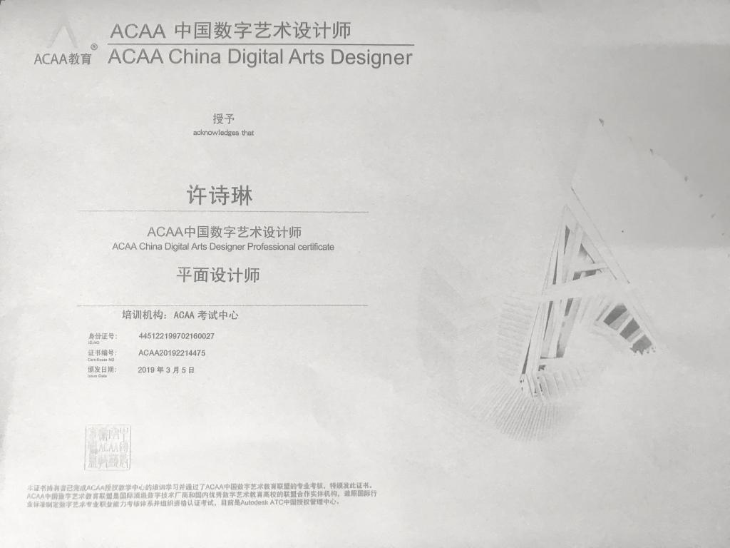 ACAA中国数字艺术设计师证书 许诗琳