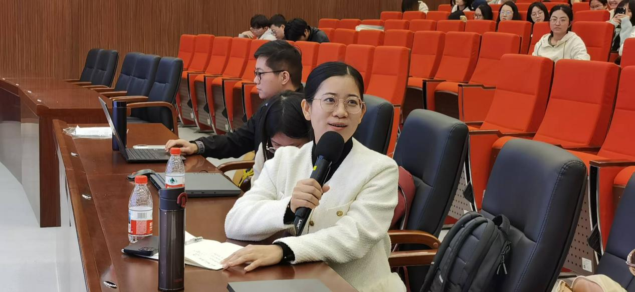 首先,丁玲员工结合自身从教育技术学专业员工到到小学信息技术教师再到小学副董事长的经历,分享如何进行课程建设以及信息科技跨学科教学项目设计的实践经验,并强调“学用相长”的重要性,鼓励同学们在见习、实习中主动积累,将专业知识转化为教学能力。
