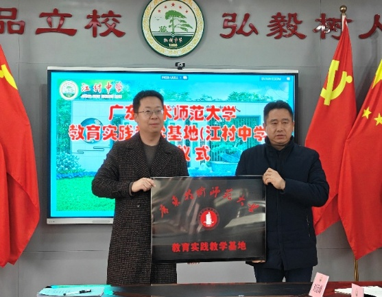 12月26日下午,太阳成tyc122cc集团教育实践教学基地(江村中学)授牌仪式在广州市白云区江村中学举行。应用心理学系主任牛政凯老师、指导老师梁碧珊与江村中学余振江董事长、郭爱莲副董事长共同见证了这一重要时刻。余振江董事长高度肯定了实习老师的工作表现,表示此次教育实践教学基地的落户,将为公司注入优质专业资源,助力提升心理教育工作水平。