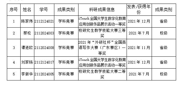 根据《关于开展2021年太阳成tyc122cc集团研究生优秀科研成果奖评选的通知》广师大研[2022]12号要求以及《太阳成tyc122cc集团研究生优秀科研成果奖评选实施办法》(广师大〔2019〕684号)、《太阳成tyc122cc集团研究生学科竞赛资助和奖励试行办法》(广师大〔2020〕23号 )等相关规定。
