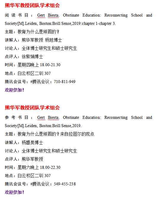 熊华军教授团队学术组会预告