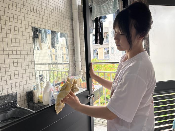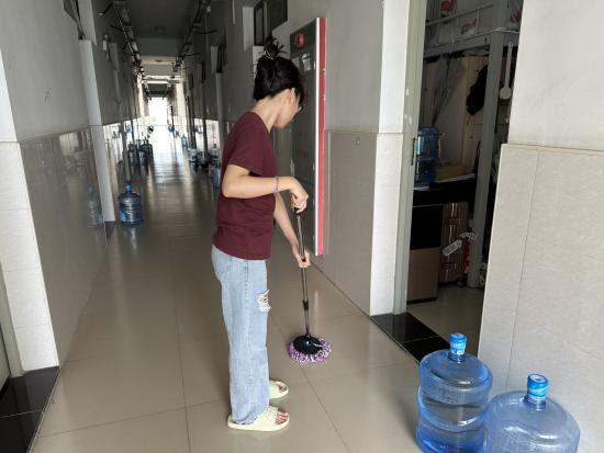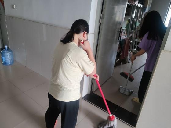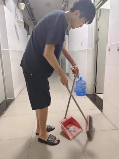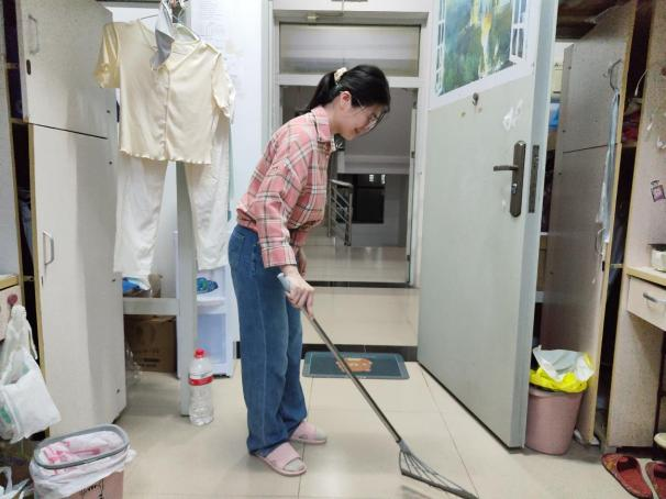 宿舍成员积极参与,分工合作、齐心协力,重点围绕宿舍卫生死角、物品收纳、走廊阳台等方面对寝室进行了全面彻底地清扫。大家一致认为应该保持健康的生活环境,打造卫生整洁、文明有序的寝室环境,为营造良好的学习和生活氛围做出属于自己的贡献。
