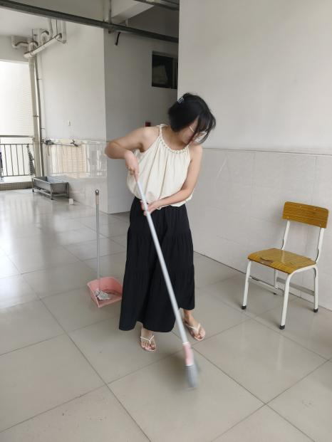 我们四人进行了分工,分别负责扫地、拖地、清洁洗手台、清洗冲凉房和厕所。打扫时,我们每个人都承担起自己的责任,高效地完成了打扫任务。看到宿舍和走廊被我们打扫得干干静静的,我们充满了成就感和喜悦。一个舒适的宿舍环境不仅让我们享受愉快的生活,还有助于我们专心学习。