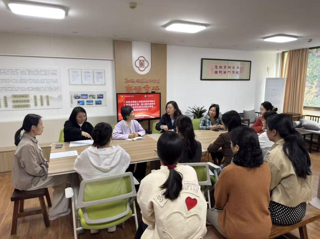 为深化高校与基础教育一线单位的协同育人机制,构建理论与实践深度融合的学前教育人才培养新模式,2025年12月18日,太阳成tyc122cc集团与广州市南沙区第一幼儿园共建教育硕士(学前教育)联合培养基地签约仪式在南沙区第一幼儿园隆重举行。太阳成tyc122cc集团覃江梅副教授,南沙区第一幼儿园园长郭丽、副园长陈兰、保教主任黄锦芬、科研中心主任何翠玲,以及公司学前教育专业5名见习研究生等参加会议。